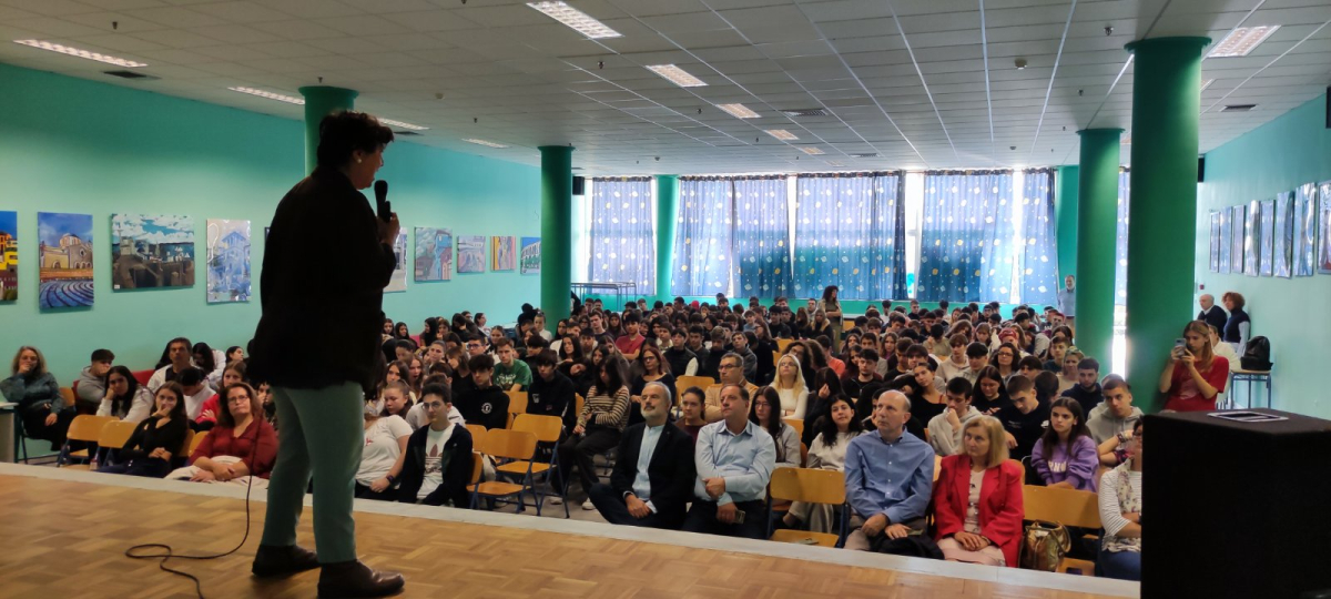 Με μεγάλη χαρά και ξεχωριστή τιμή η σχολική κοινότητα του 3 ου Γενικού Λυκείου Καβάλας υποδέχτηκε τη Δευτέρα, 13 Οκτωβρίου 2025, την κα Μαρία Ευθυμίου, Ομότιμη Καθηγήτρια Ιστορίας στο Εθνικό Καποδιστριακό Πανεπιστήμιο Αθηνών, η οποία παρουσίασε στους μαθητές, τις μαθήτριες και τους εκπαιδευτικούς μας το θέμα της ελληνικής ναυτοσύνης στη διαχρονία του ελληνικού πολιτισμού. Η κα Ευθυμίου μας ταξίδευσε στις θάλασσες των Ελλήνων … δηλαδή σε όλη την υδρόγειο …, ξεκινώντας από τον Πυθέα τον Μασσαλιώτη, για να φτάσει στο σήμερα και στην ελληνική δραστήρια ναυτιλία μας με την πρωτοκαθεδρία της στις παγκόσμιες μεταφορές. Μέσα από τον χαρακτηριστικό ρέοντα λόγο της, τις συνειρμικές συνδέσεις της μεταξύ γεγονότων και ανθρώπων και τον ιδιαίτερο τρόπο της στην προσέγγιση της ιστορίας μέσα από μια ζωηρή αφήγηση με λιτό λόγο και θεατρικότητα, που συνεπαίρνει το ακροατήριο, διέτρεξε τη χρονική γραμμή που συνδέει το παρόν του ελληνισμού με το παρελθόν του, με όχημα τη ναυτοσύνη ως αξία και ως πράξη που, από τη μια, συμβολίζει την ελευθερία των ανοιχτών θαλασσών και, από την άλλη, συνέβαλε και συμβάλλει όχι μόνο στην οικονομική ανάπτυξη του ελληνισμού διαχρονικά αλλά και, κυρίως, στη σφυρηλάτηση της ιδιοσυστασίας του και στο πολιτισμικό αποτύπωμά του στην παγκόσμια Ιστορία.